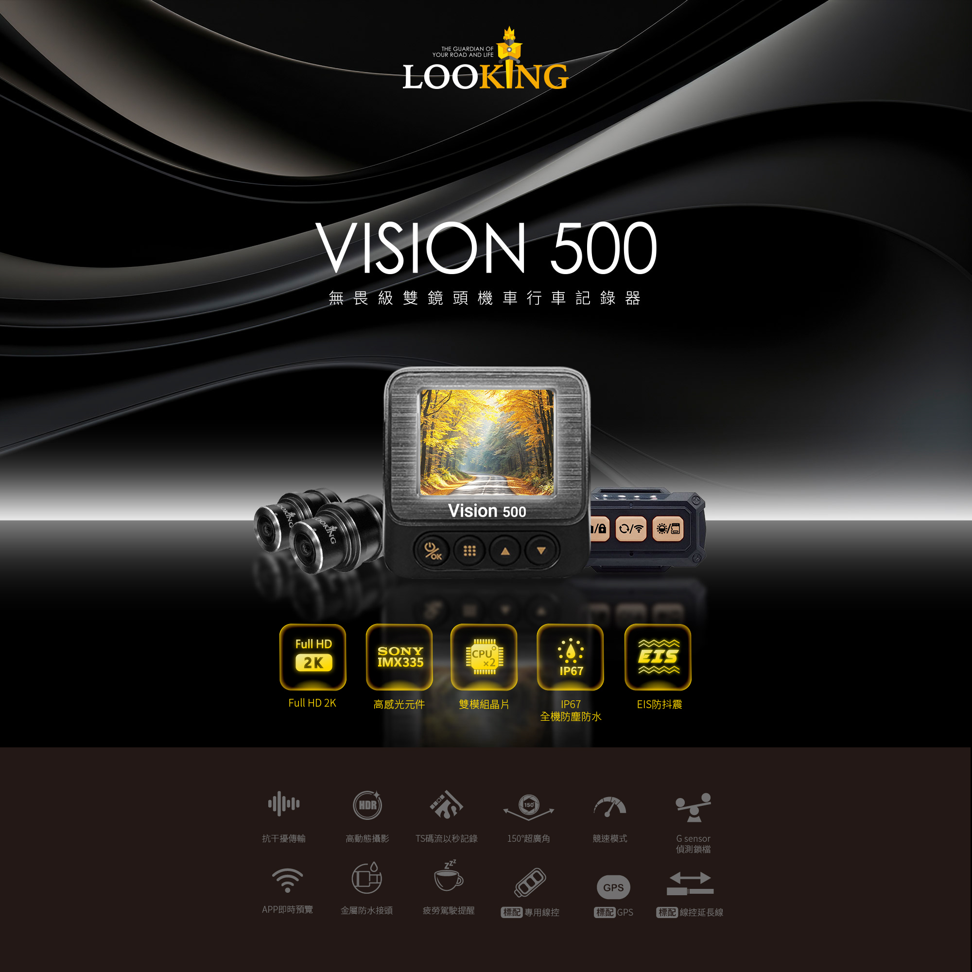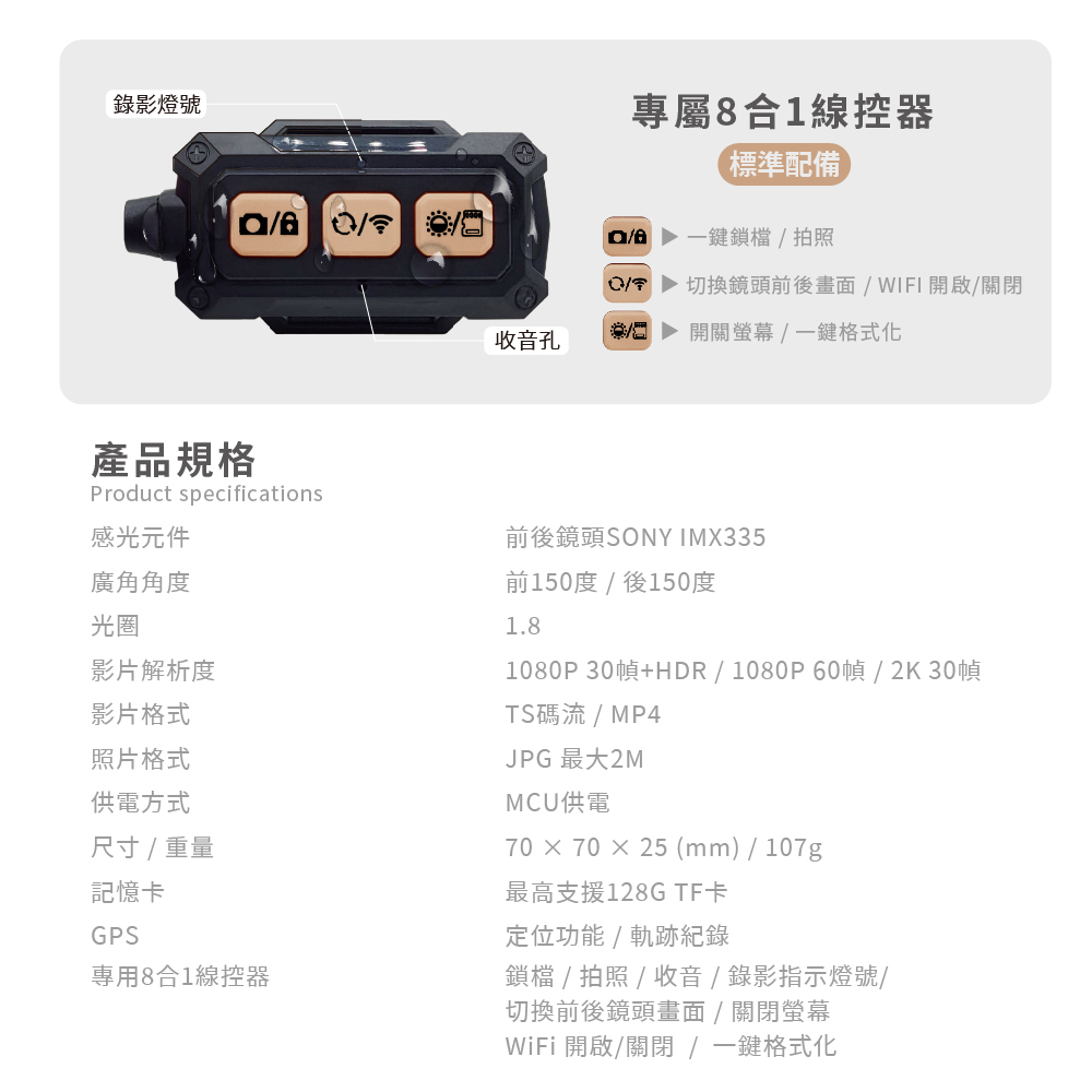 ☑標配專用線控六大功能,一鍵鎖檔、拍照…