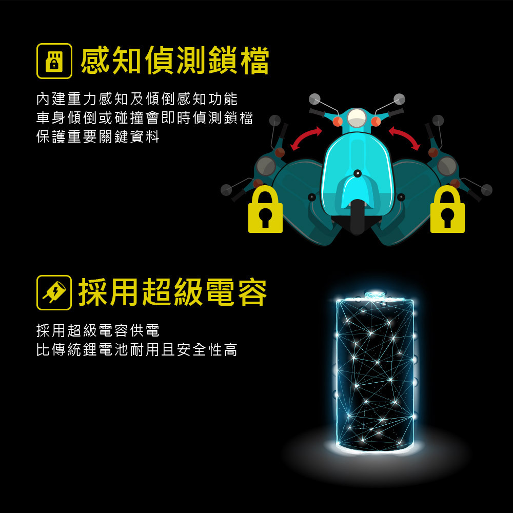 ☑碰撞感應及車身傾倒偵測鎖檔,自動備存重要檔案