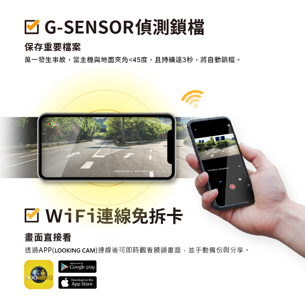☑ WIFI即時預覽與影片下載,操控更便利