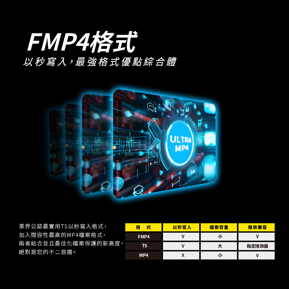 ☑ ULTRA MP4格式:穩定錄影,秒寫無漏秒