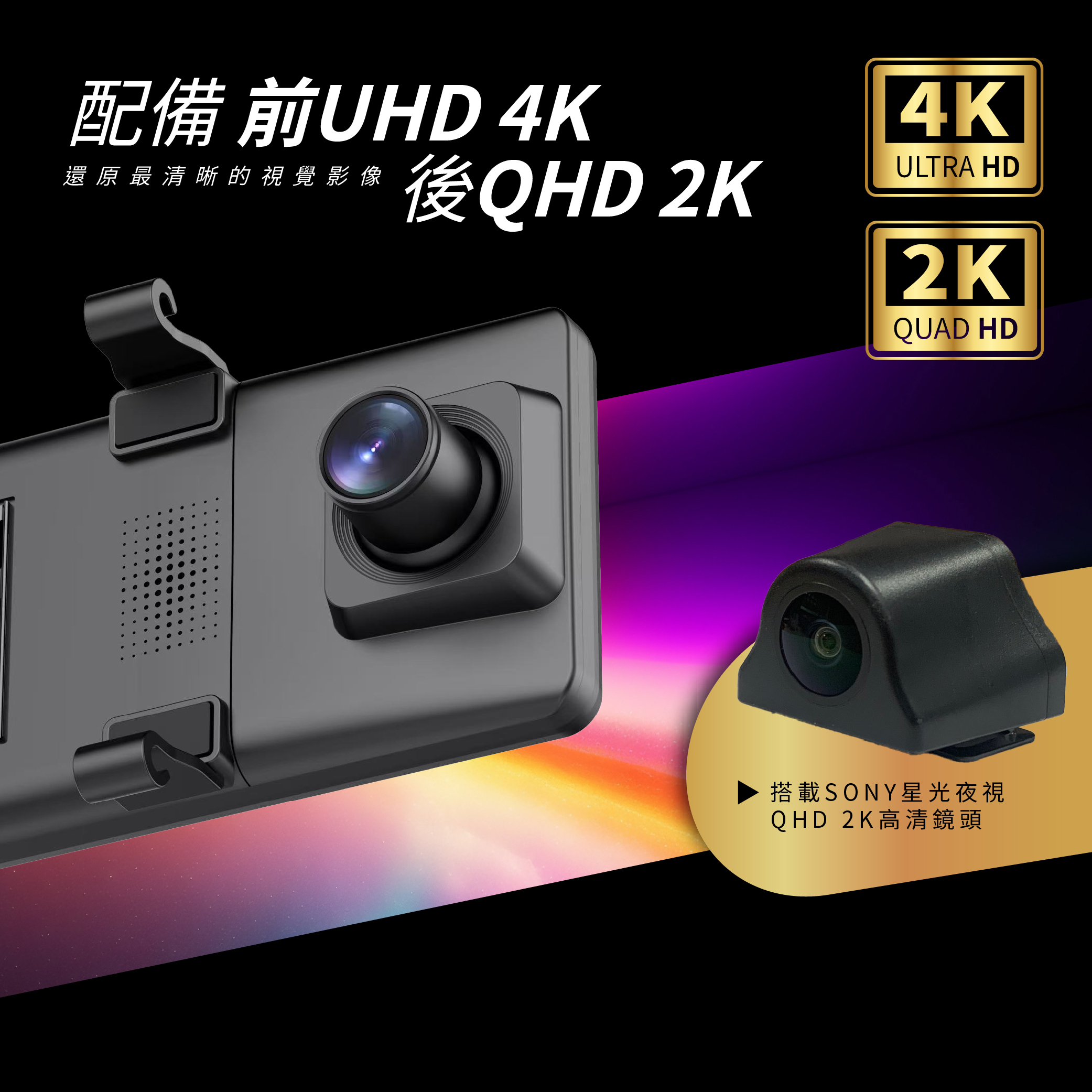 ☑前UHD 4K+後QHD 2K,高清畫質
