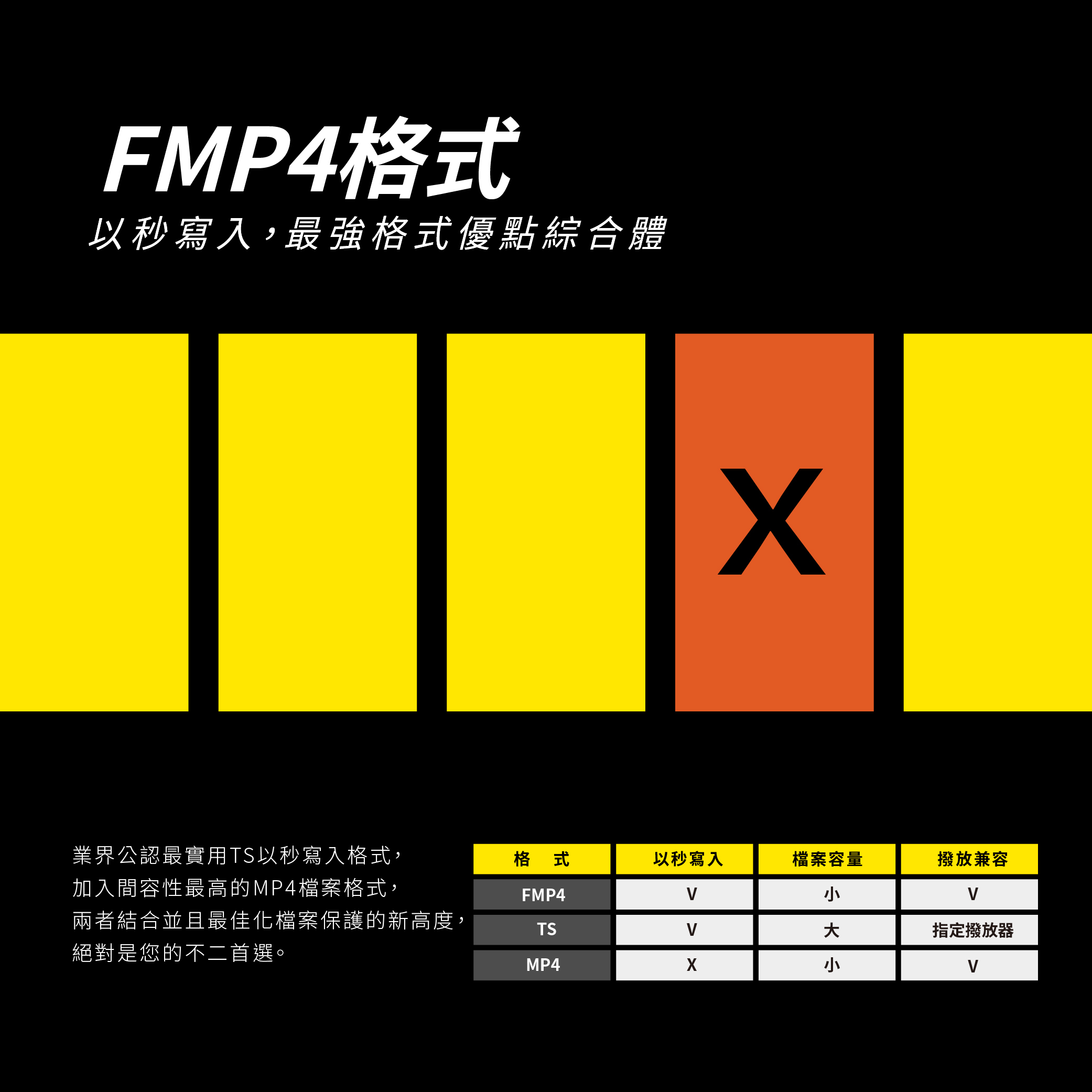 ☑以秒寫入FMP4影片格式,降低瞬間斷電