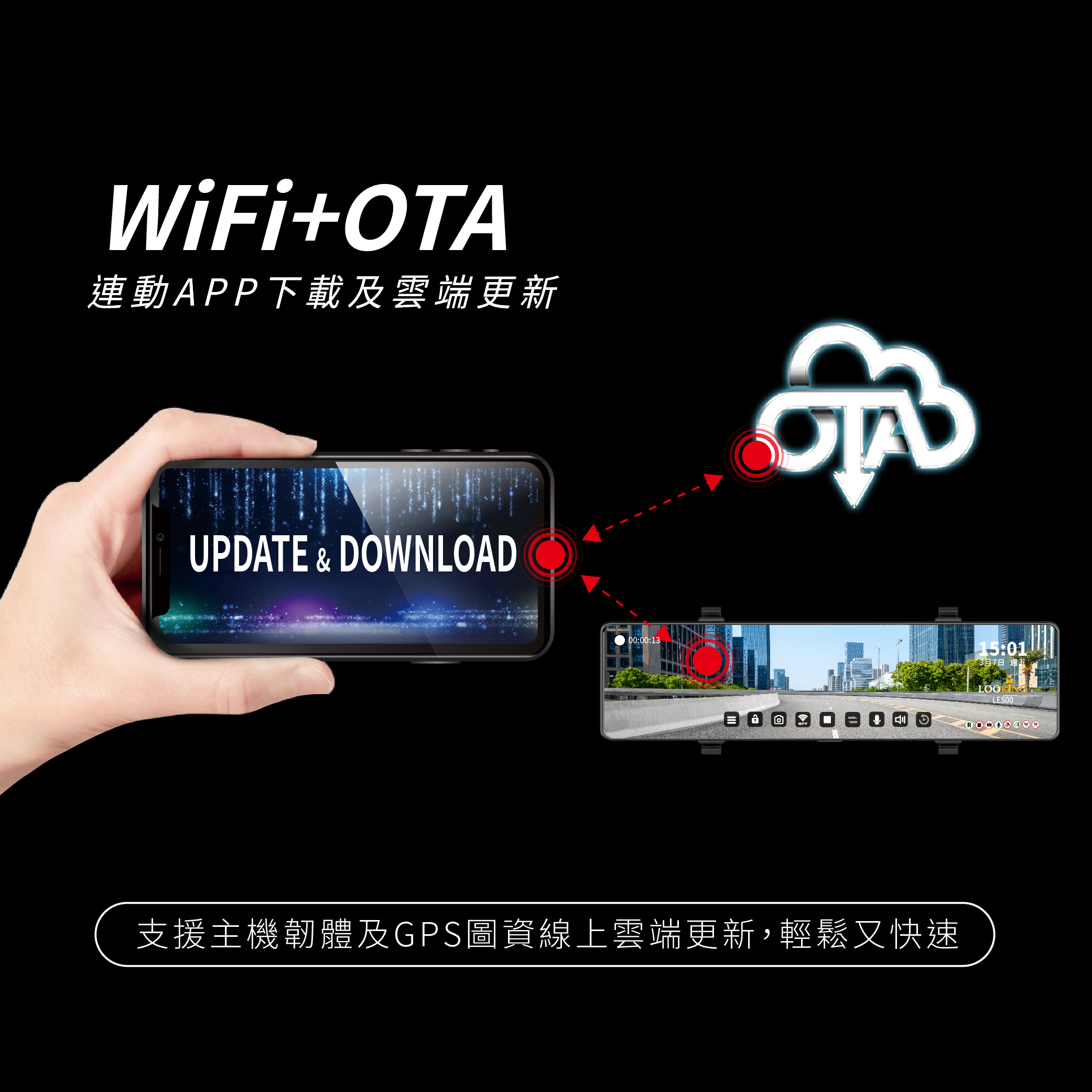 ☑支援OTA主機韌體及電子狗圖資APP雲端韌體更新