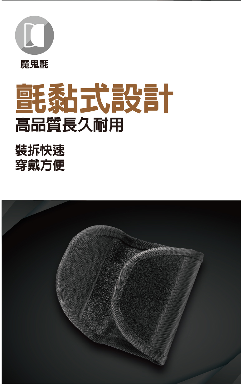 – 氈黏式設計,裝拆快速,穿戴方便
