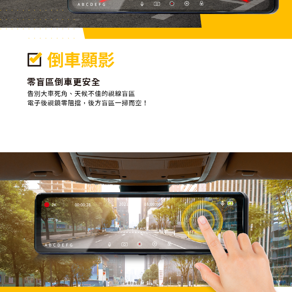 ► 電子後視鏡零阻擋,後方盲區一掃而空