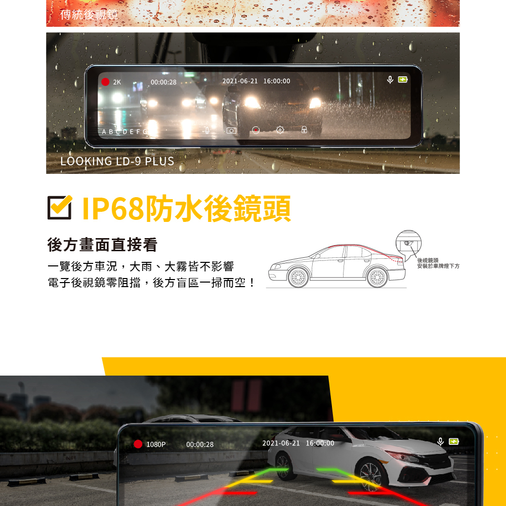 1.型號:LD-9 Plus 流媒體觸控式電子後照鏡行車紀錄器
