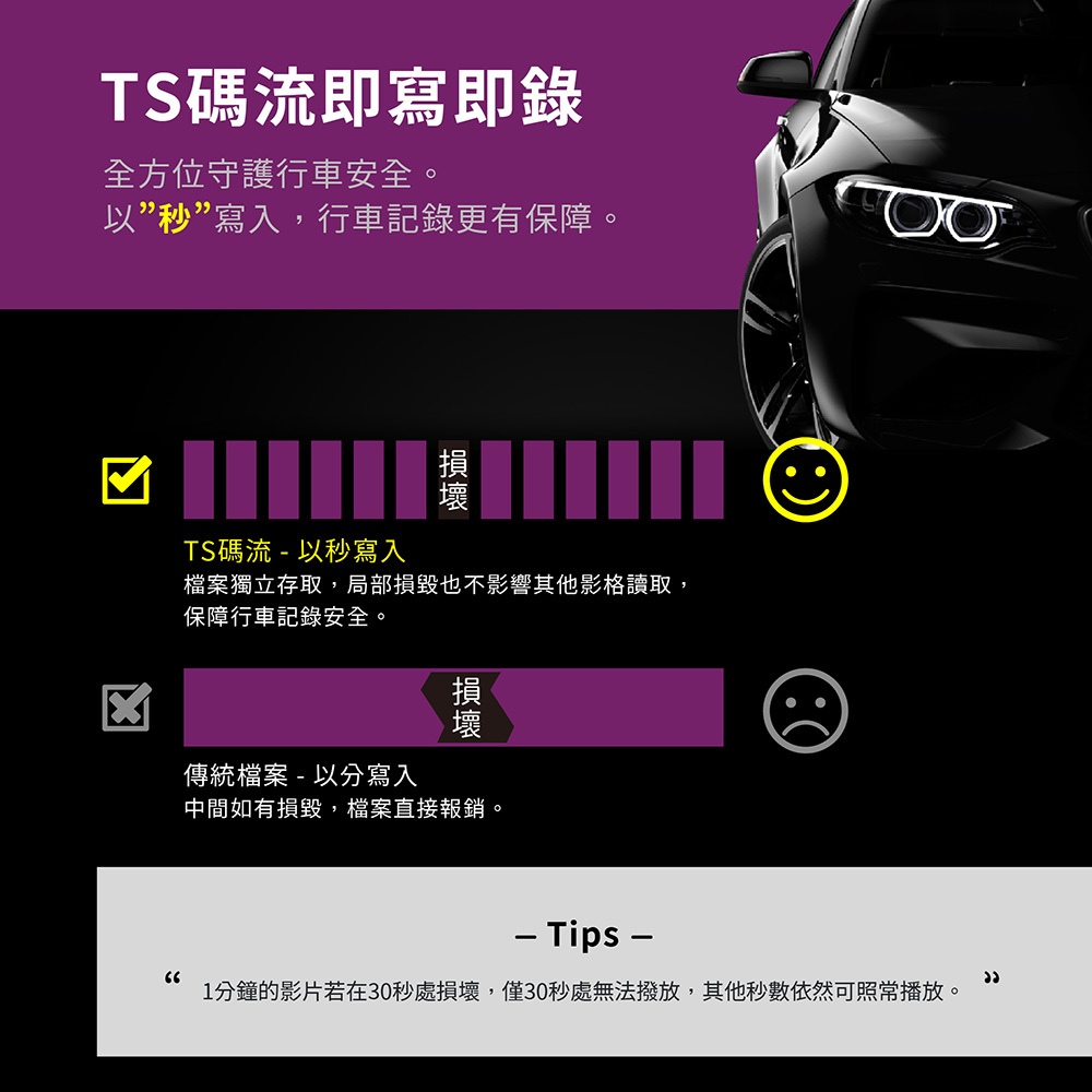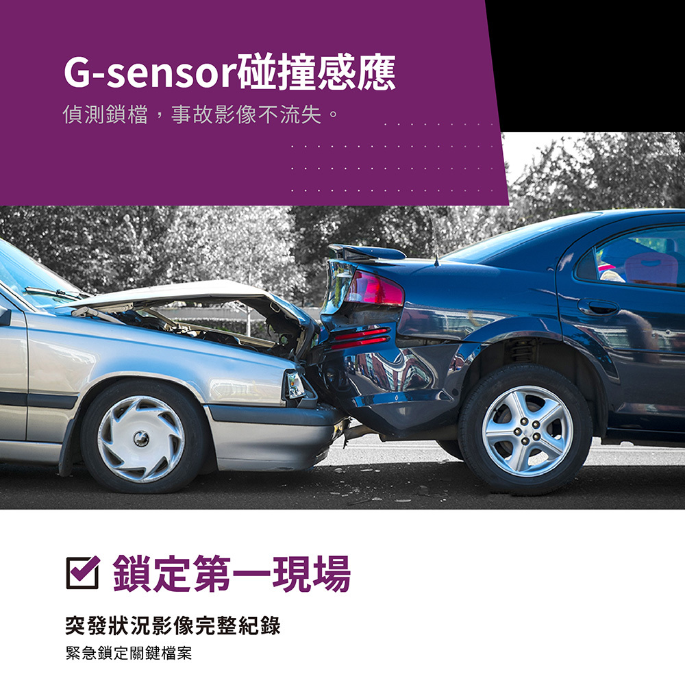 ► G-sensor碰撞感應,事故影像不流失
