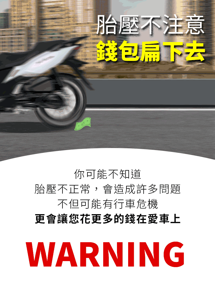 ►胎壓、胎溫異常警示,防止爆胎